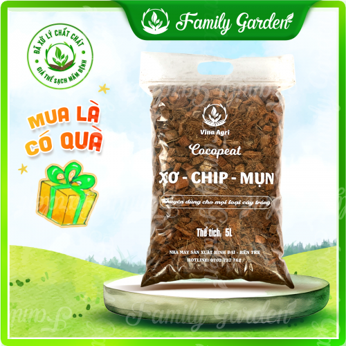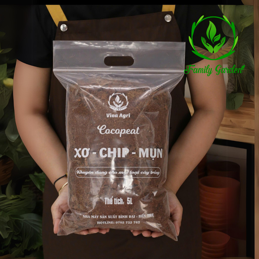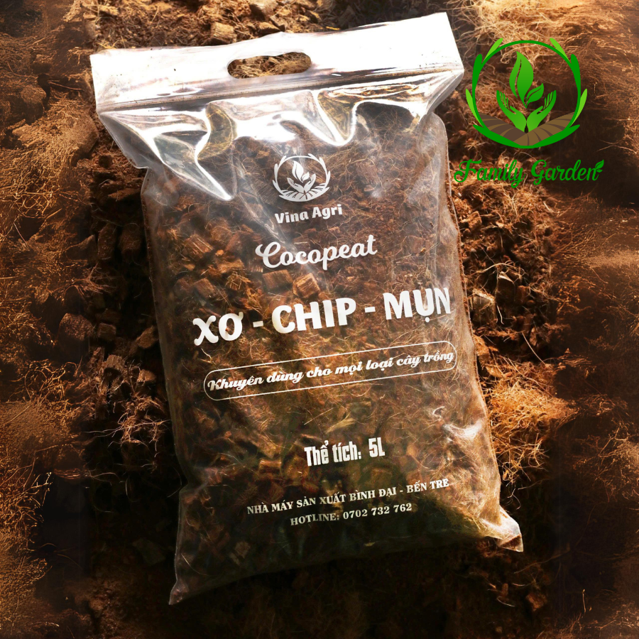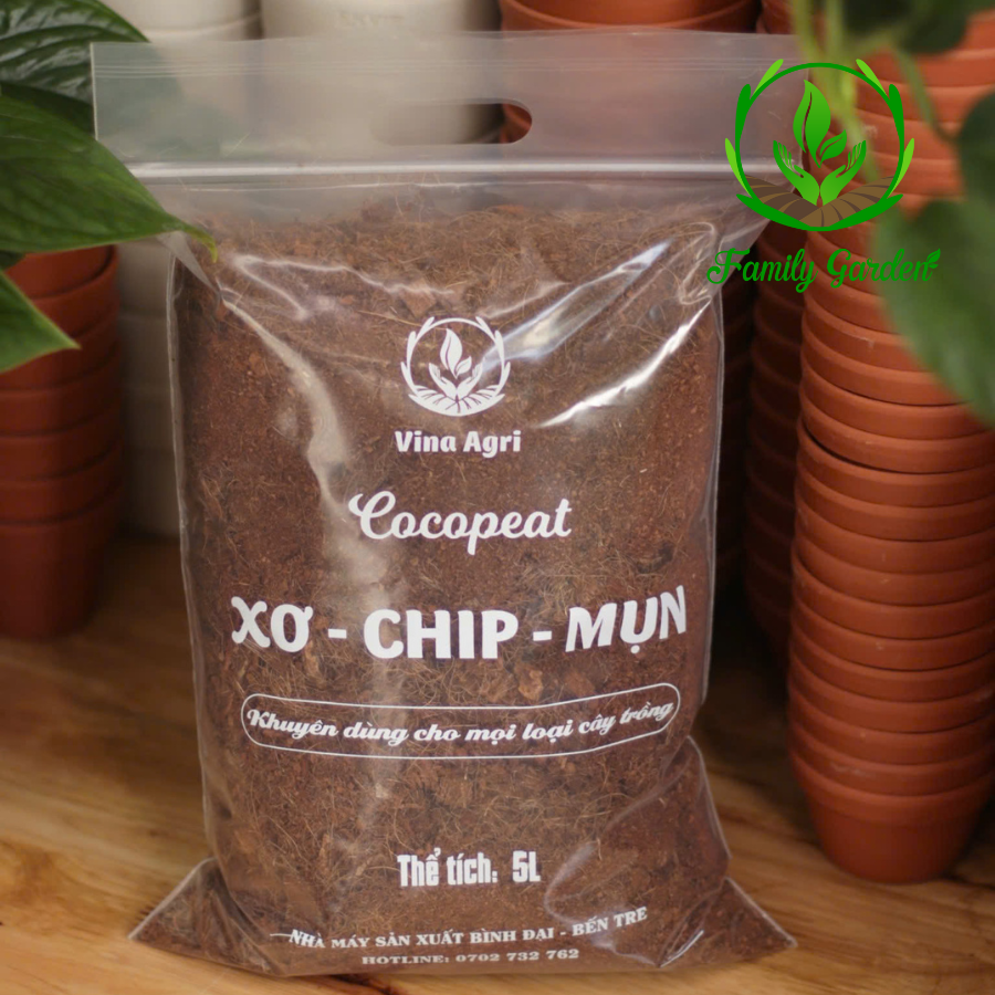 TÚI 5L XƠ CHIP MỤN DỪA ĐÃ QUA XỬ LÝ THƯƠNG HIỆU VINA AGRI GIÁ THỂ TRỒNG CÂY CHẤT LƯỢNG CAO & ĐỘC QUYỀN FAMILY GARDEN