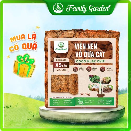 - Vỏ dừa cắt hay còn gọi là coco chips thuộc thương hiệu Vina Agri độc quyền nhà Family Garden đã qua xử lý sạch mầm bệnh, xử lý mặn và ép kiện là chất trồng phổ biến và được ưa chuộng bởi khả năng thoáng khí, chống nóng, và giữ ẩm tốt, đặc tính xốp nên có khả năng thoát nước tốt giúp cây trồng chậu tránh ứ đọng nước gây úng.