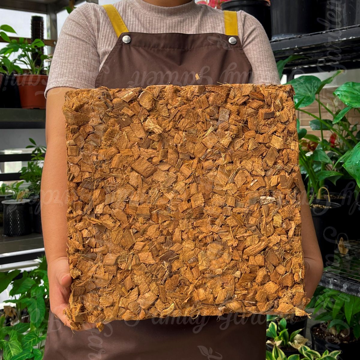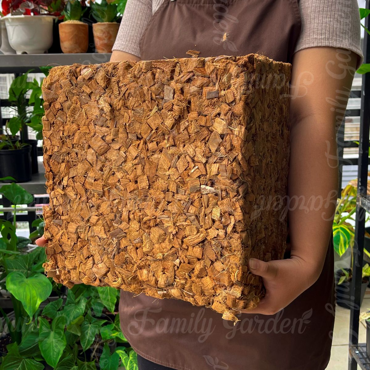 Vỏ dừa cắt hay còn gọi là coco chips thuộc thương hiệu Vina Agri độc quyền nhà Family Garden đã qua xử lý sạch mầm bệnh, xử lý mặn và ép kiện là chất trồng phổ biến và được ưa chuộng bởi khả năng thoáng khí, chống nóng, và giữ ẩm tốt, đặc tính xốp nên có khả năng thoát nước tốt giúp cây trồng chậu tránh ứ đọng nước gây úng.